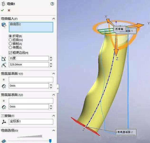 如果说做一个把手的建模,使用什么方法比较快速呢? 我想说,你们一定是SOLIDWORKS基础没打好,为什么这样说呢?因为,早在很多年前,SOLIDWORKS就加入了自由形曲面,所以,使用自由形曲面,可以很简单的完成此操作,下面,我们就来介绍下,SOLIDWORKS中自由形是如何完成的。 首先,我们先绘制一个半圆的草图,然后,拉伸为曲面实体,如下图: 之后,我们可以利用自由形工具,来对曲面进行变形操作,我们将其中一条边线设置为“可移动/相切......